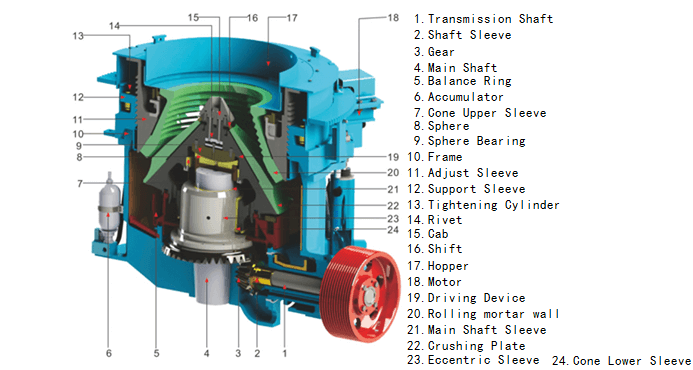 1). The adjusting ring consists of hopper, thread ring, fixed cone liner and other components. Its installation quality can also affect the stability of equipment operation, crushing effect and service life of fixed cone liner.