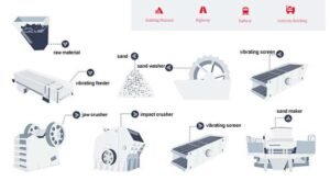 - e. Jaw crusher + cone crusher + impact sand shaper or sand making system (common).